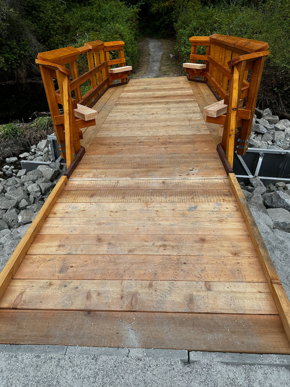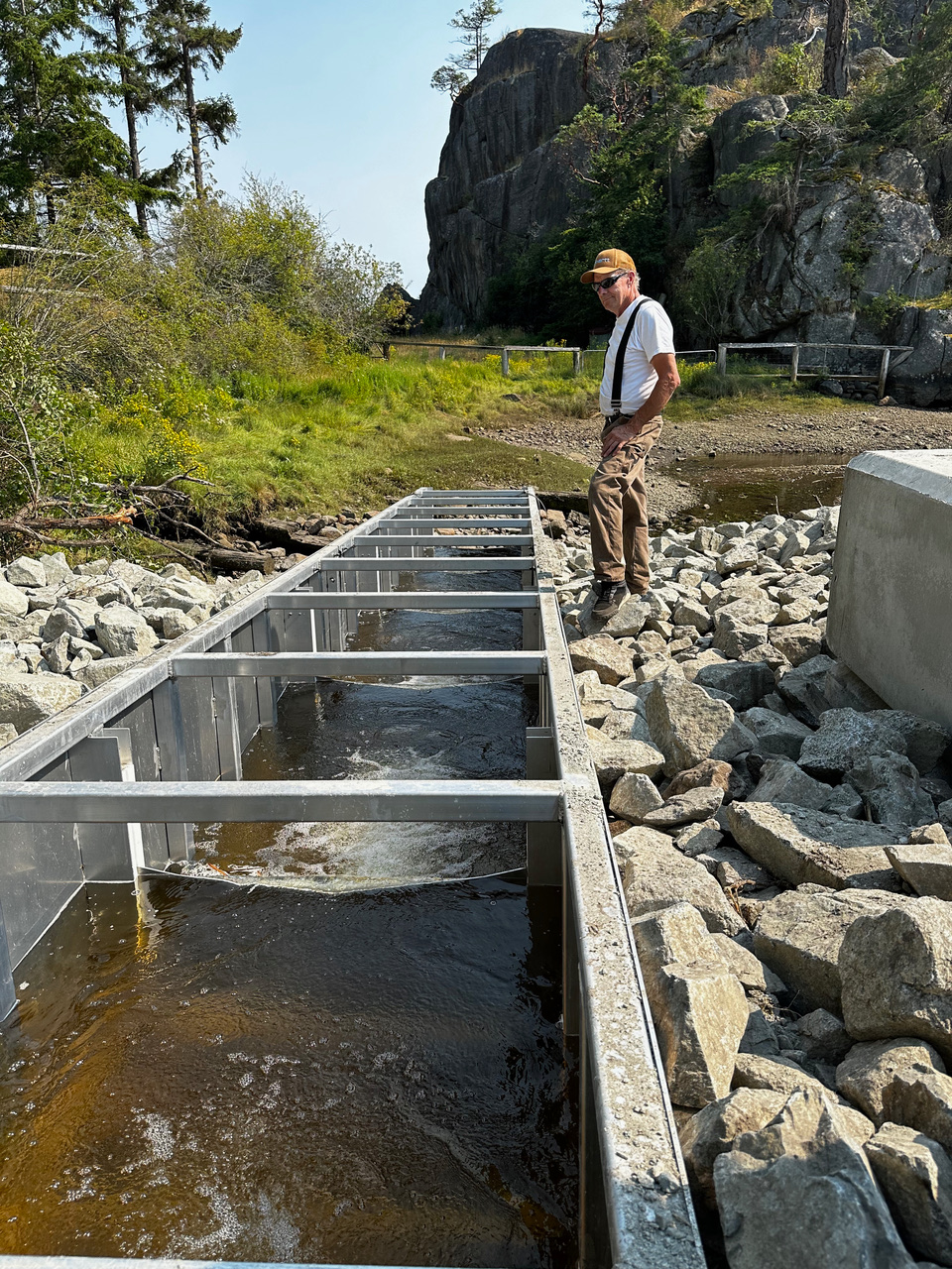 A new aluminum Fish Ladder was installed in early August, 2024, and the final phase – a “beaver baffler” – was completed at the end of September.